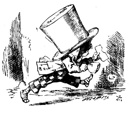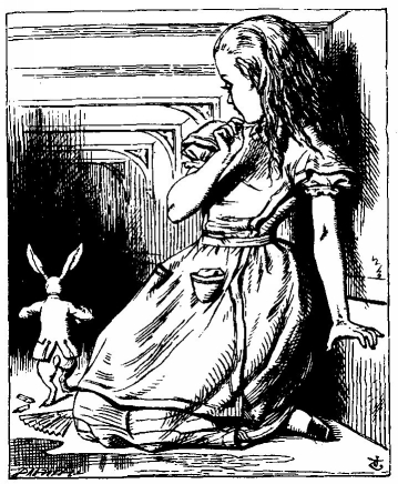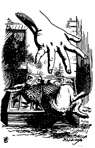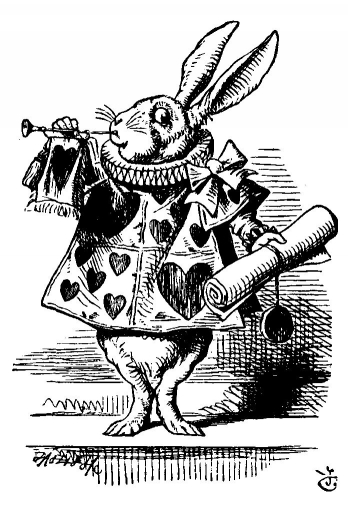Вдруг мимо пробежал белый кролик с красными глазами.
