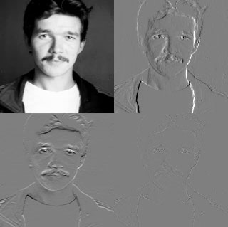 Хорошо видно, как меняется качество приближения частей изображения, при увеличении степени конмрессии. Характер этих скажений принципиально иной, чем, например, в алгоритме JPEG.