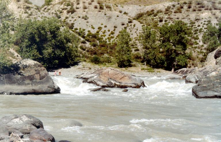 правобережной скалы. Здесь собирались строить ГЭС. Еще в 1989 здесь был большой
