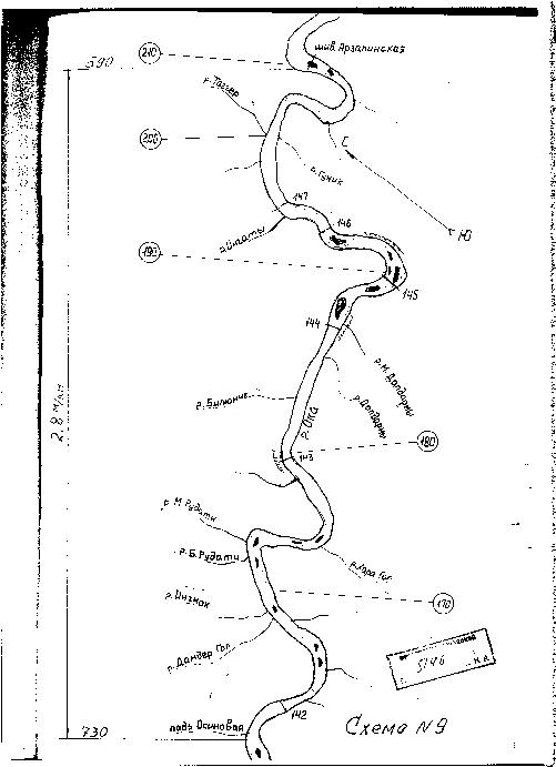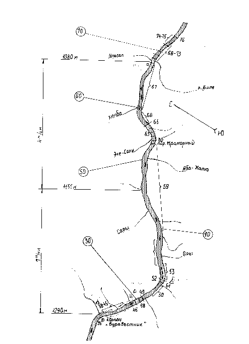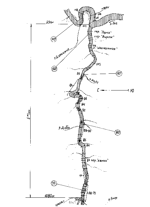 100-105. Сильные шиверы. Скальные стенки 100 м и выше.