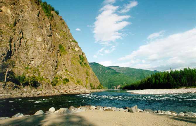 Порог "Вираж" по нашей воде не представлял вообще никакого интереса. Мы долго не могли понять, почему то, что было до этого, считалось шиверами (пусть и мощными), а "Вираж" порогом. Описывать его нет никакого смысла. Скучно.