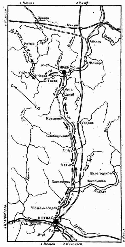 ров -- Котлас) пароходом  до села  Яренск (основано в XV в.).  До  выхода на  маршрут