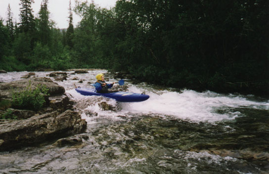 Выбор оптимального судна для такого похода задача весьма непростая, которая, видимо, не имеет точного решения. Наиболее подходящими можно считать не очень длинные полиэтиленовые каяки (Reflex, например, явно был великоват), каркасные каяки, ну и, наверное КНБ (с большими оговорками). Таймень с не облегченной (резиновой) шкурой - лодка явно не подходящая, катамараны тоже - речка слишком мелкая и каменистая, расход небольшой.