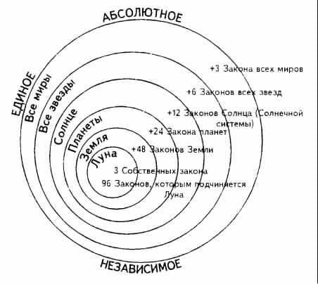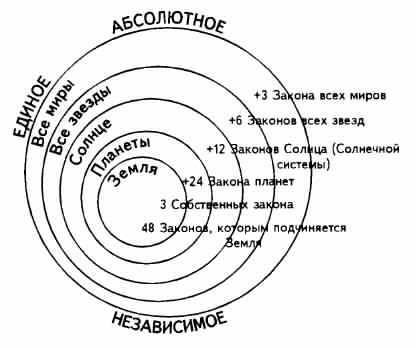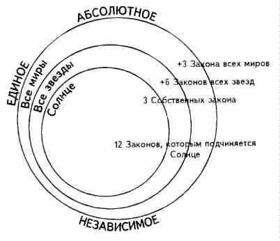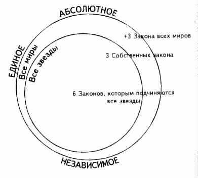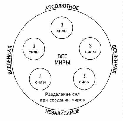 Фундаментальные законы вселенной. -- Закон тpex принципов, или трех сил. -- Необходимость трех сил для возникновения явления. -- Третья сила. -- Почему мы не видим третью силу? -- Три силы в древних учениях. -- Творение мира волей Абсолютного. -- Цепь миров, или Луч творения. -- Количество законов в каждом из миров.