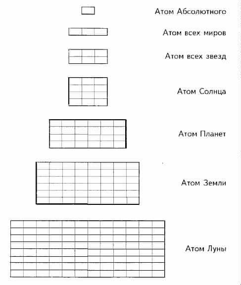 Процесс творения никогда не останавливается. -- Влияния передаются вниз по Лучу творения посредством излучений. -- Три октавы излучений: Абсолютное -- Солнце, Солнце -- Земля, Земля -- Луна. -- Рассмотрсние вселенной в такой форме поясняет, как вещества и силы различных планов соотносятся с нашей жизнью. -- Интервалы трех октав. -- Толчки, перекрывающие интервалы. -- Понятие "точка вселенной". -- Частота вибраций в веществах противоположна их плотностям. -- В соответствии с Законом Трех, двенадцать триад производят водороды, распределяющиеся по плотности от 6 до 12288. -- Водороды представляют категории материи. -- Градация Вселенной от Абсолютного до Луны. -- Модификация этой шкалы -- приведение ее в соответствие с материей человеческого организма. -- Измененная таблица водородов для классификации веществ в отношении к жизни и работе любого организма. -- Категории материи в таблице водородов. -- Каждый водород представляет определенную "космическую группу". -- Таблица атомных весов. -- Понятие "атом".